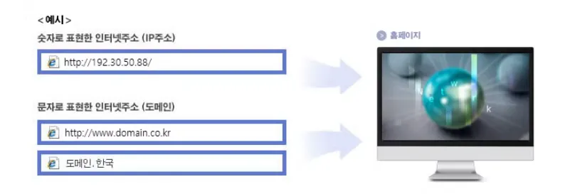 도메인은 인터넷에 연결된 컴퓨터를 사람이 쉽게 기억하고 입력할 수 있도록 문자(영문, 한글 등)로 만든 인터넷 주소입니다.